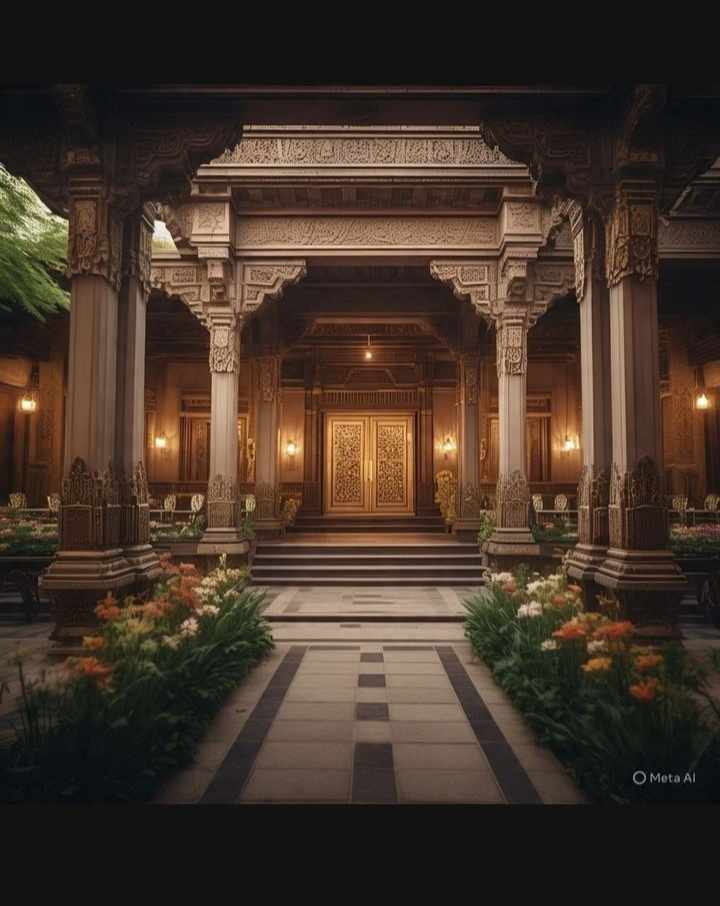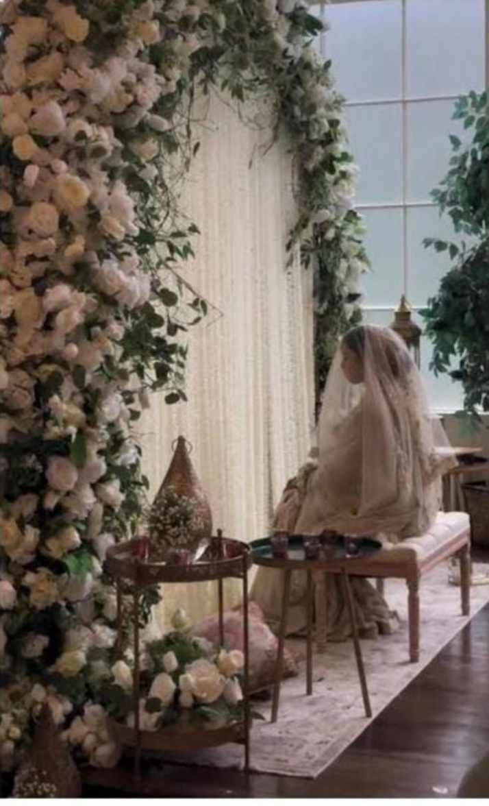 The hall is filled with people cheerful voice and joy laughter in the middle of the hall 2 people's are sitting facing each other in between them Nikka curtain is placed